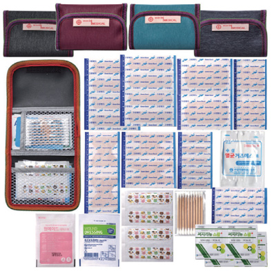 | 기타사항 | 표준밴드8P, 대형밴드2P, 사각밴드2P, 미니밴드5P, 손끝밴드2P, 관절밴드2P, 방수밴드2P, 칼라밴드4P, 드레싱밴드1P, (멸균거즈2P짜리1장), 알콜솜4P, 10P면봉, (하이드로글로이드 12P 1장) |